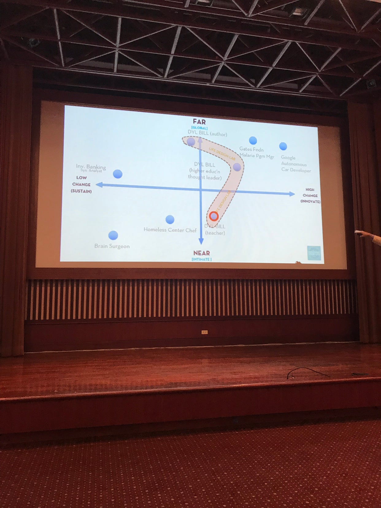 อาจารย์บิลบอกว่า Design Thinking หรือ D.S ที่กำลังโด่งดังในยุคนี้ เป็นแนวคิดที่ใช้กับผลิตภัณฑ์ แต่นำหลักการของ D.S. ประยุกต์ใช้กับชีวิตได้ เช่นการออกแบบอนาคตของตนเอง