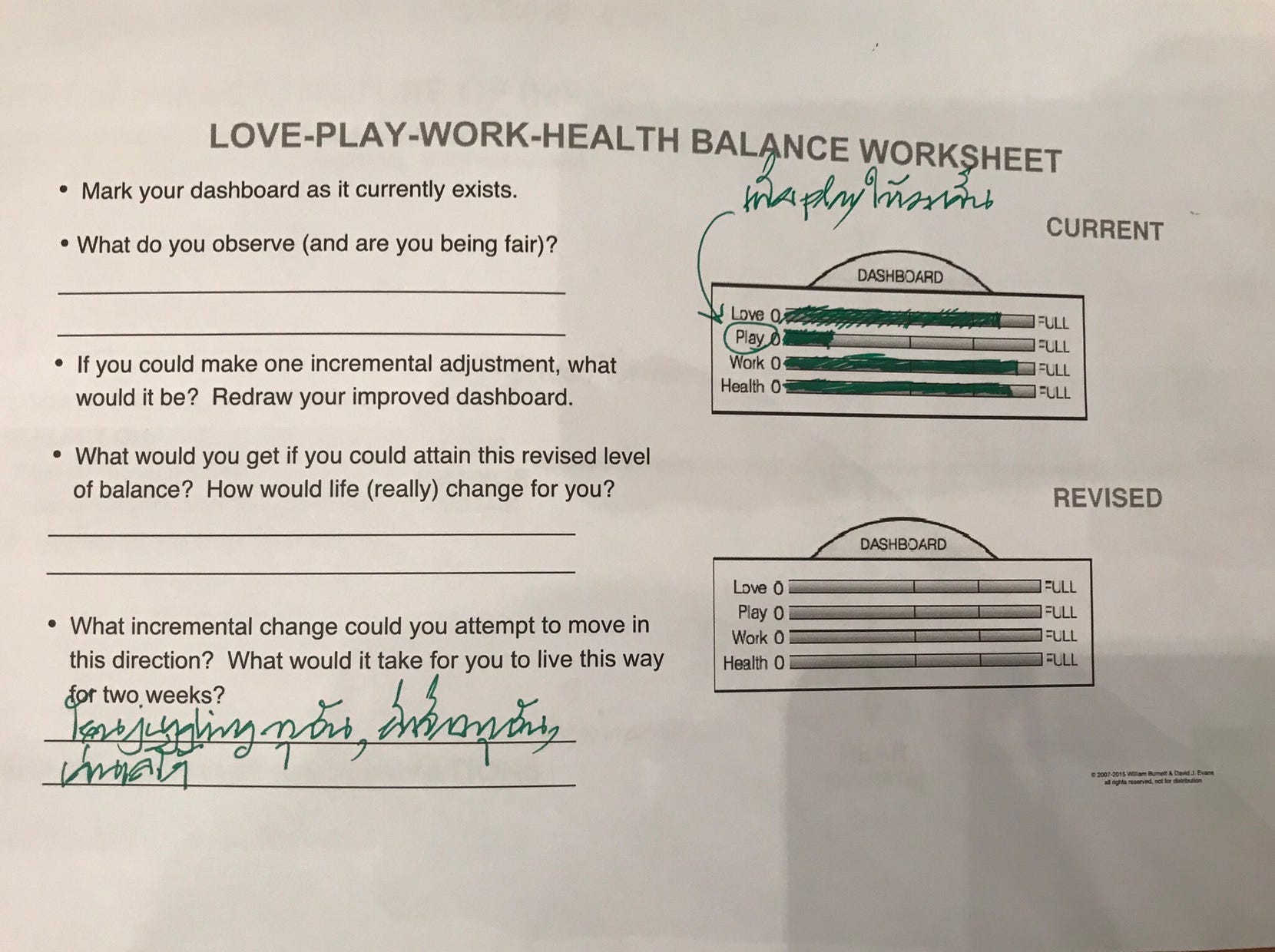 อาจารย์บิลเสนอแนวคิดใหม่เรื่องการใช้ชีวิตอย่างสมดุล โดยแบ่งออกเป็น 4 เรื่องคือ play , health , work , love